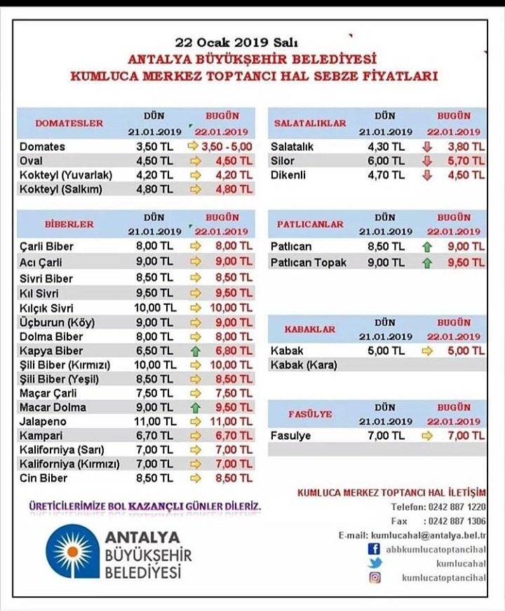 mehmet adli kullanicinin kumluca hal fiyatlari panosundaki pin 15 ocak